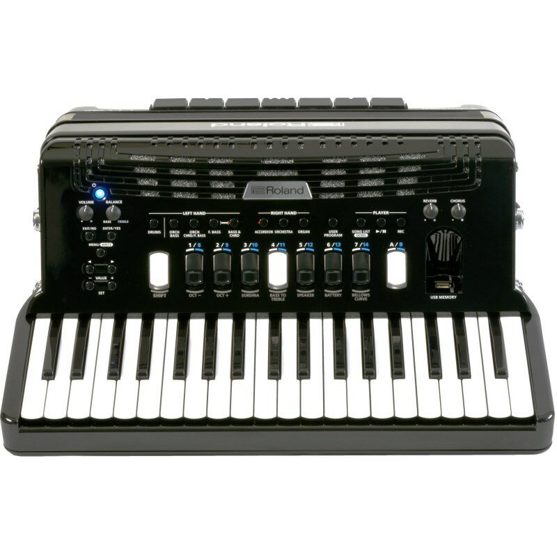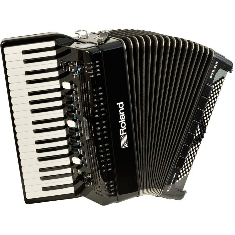 楽器種別:新品Roland/新品 商品一覧>>電子ピアノ・その他鍵盤楽器【325,000円〜615,000円】 商品一覧>>アコーディオン/ピアノタイプ/Roland 商品一覧>>1998年開店 渋谷発・国内最大級DJ機器専門店です!Roland (豪華特典・純正リュック型ソフトケース) (数量限定・高品質なイタリア製ショルダーストラッププレゼント!) FR-4X BK ブラック Vアコーディオン ローランド 電子 ピアノ式 37鍵盤 中型 ピアノタ...商品説明☆今なら「Roland FR-4X」シリーズ何れかのモデルをご購入頂いたお客様に台数限定で高品質なイタリア製ショルダーストラッププレゼント!通常付属品と異なり、金具への取り付け部の素材も革になっており、ベルトのように穴の位置で調整が可能になっています。耐久性と安定性に優れた本格仕様のアコーディオンストラップ「EL7cm」通常単品販売価格¥16,500(税込)がプレゼントでついてくる超お買い得なキャンペーン!お見逃しなく!※本キャンペーンストラップに背中留めは付いておりません。■ストラップ幅:約7cm(中型以上のアコーディオンに最適です)-------------------------★人気の中型Vアコーディオンのボタン式モデル「Roland FR-4X BK」に台数限定で純正リュック型ソフトケースをお付け致します!■台数限定特典・純正リュック型ソフトケース BAG-FR3大変お買い得な1台限定豪華特典!お見逃し無く!!■中型サイズのボディに、最新の音源を搭載。幅広い演奏シーンで活躍するVアコーディオン(ピアノ鍵盤タイプ)伝統のアコーディオンに革新的なデジタル技術を融合したV アコーディオンから、FR-4x が新登場。軽量で使いやすい中型クラスのサイズ(右手ピアノ鍵盤37鍵)に、フラッグシップ・モデルFR-8x 直系の最新音源を搭載しました。内蔵音色はアコーディオン音色、オーケストラ音色ともに大幅に強化。2つのメイン・スピーカーに1ツイーターを加えた新スピーカー・システムが、クリアで迫力のあるサウンドを実現します。操作パネルも最新のユーザー・インターフェースに統一し、操作性が飛躍的に向上。専用エディターを使用すれば、FR-8x 相当の音色のカスタマイズも可能です。コンパクトながらもV アコーディオンの楽しさが凝縮された1台です。右手ピアノ鍵盤37鍵盤、左手ボタン鍵盤120ボタン。軽量、コンパクトな中型サイズのVアコーディオン。フラッグシップ・モデルFR-8x直系の音源を搭載。ヘッドホン端子、アウトプット端子を装備。100アコーディオン・セット(うちプリインストール数67)、162オーケトラ音色、32オルガン音色、3ドラムセットと、多彩な音色を内蔵。エフェクトは、コーラス、リバーブ、オルガン用ロータリー・エフェクトを搭載。本体のレコーダーには、オーディオ録音が可能。クイックかつ敏感に反応する高度なベローズ・コントロール。空気穴やベローズカーブの調節により、蛇腹の操作感の調整が可能。パワフルな内蔵スピーカー・システム(2メイン・スピーカー+1ツイーター)。カスタムLCD搭載で、わかりやすい操作。拡張音源用の4つの拡張スロットを搭載(バルカン、ダラッペ音色の2音色は、プリインストール済み)。FR-4x専用エディター(PC用)を用意。USBコンピューター端子、MIDI端子を搭載。USBメモリー端子搭載。オーディオ再生、録音が可能。市販充電池10本(単三形)にてバッテリー駆動が可能。イタリア製。カラーはブラック、レッドの2カラー。●多彩なジャンルの演奏を可能にする内蔵音色伝統のアコーディオンに革新的なデジタル技術を融合したV アコーディオン。軽量ながらも本格的な演奏が可能な37鍵盤の最も使いやすいモデルに、フラッグシップFR-8x直系の最新音源を搭載しました。蛇腹のコントロールに対して、クイックかつダイナミックなサウンドを実現します。Vアコーディオンならではの豊富な内蔵音色も強化。フレンチ・ミュゼット、ジャーマン・フォークなど世界のアコーディオン・サウンドは、67セットをプリインストール。オーケストラ音色はローランド最新のキーボードより人気音色を厳選し、160種類以上の音色を搭載しました。ベース・ボタンはフリー・ベースにも対応。さらに拡張音色やアコーディオン・セットのバリエーションなど、追加コンテンツも公開予定。1台でジャンルやニーズに合わせた多彩なサウンドを演奏できるモデルです。●伝統的なアコーディオンに、使いやすさをプラスアコースティック・アコーディオンと同じサウンド、奏法に、デジタルならではの使いやすさをプラス。軽量、メンテナンス不要で、気軽に持ち運びが可能。アコーディオン演奏の要である蛇腹の操作感も、ベローズカーブや空気穴の調節の組み合わせで、お好みの状態に設定ができます。バッテリー駆動に対応し、単三形充電池10本で、約5時間の連続使用が可能(スピーカーON設定時)。もちろん専用ACアダプターでの使用も可能です。デジタルだからこそ、手軽にアコーディオン演奏をお楽しみいただけます。●デジタルで広がるアコーディオンの魅力自宅練習からライブ・パフォーマ