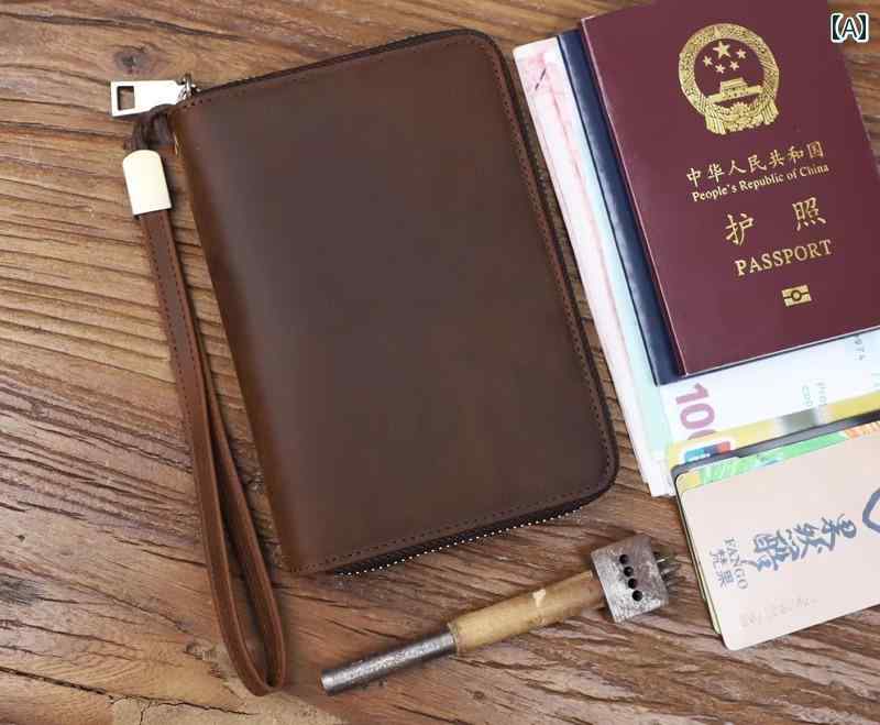 財布 メンズ おしゃれ 大人 シンプル レザー 牛革 ドキュメント パスポート 収納 袋 レトロ 革 クラッチ ジッパー 旅行 保護 カバー