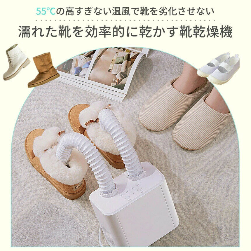 注意事項:モニターの発色により、実物と異なる場合がございます。商品説明商品特徴温風で濡れた靴を乾燥させる!温風の出るホースを靴の中に入れて湿気を飛ばす靴乾燥機です。55℃の熱すぎない温風なので靴を劣化させることなく乾かすことができます。\こんな場面で大活躍!/雨や雪で濡れてしまった靴を乾かしたい時子供の上履きを洗って乾かしたい時衣類用の乾燥機能じゃ靴が傷みそうで心配ドライヤーをあてて乾かすのはめんどう【二足同時乾燥】二股に別れたダブルノズルで2足の靴を同時に乾かすことができます。【伸縮するホース】自由に伸縮曲げることができる蛇腹状のホース。靴をホースに掛けたり、靴を床に置いたままでも乾かせます。【タイマー機能付き】30分/60分/90分/120分/タイマーなし の5段階でモード設定ができます。乾燥機の切り忘れが防止できるので安心してお使いいただけます。【ちょっと静音】近所に迷惑にならない程度の控えめな駆動音です。無音ではありません夜間や睡眠中のご使用も煩わしくなく自由に使えます。【各サイズ】本体:約17×18×11cmホース:最短20cm⇔最長46cmコードの長さ:約112cm重量(本体+ホース):約780g【認証品】安全基準のPSEマーク取得済みですので、安心してご使用いただけます。電源をつけて最初は暖かくない風が出ます。数秒後から暖かい風に切り替わります。本体とホースを外した状態でお届けします。ホースを本体に回して装着してご使用ください。コンセントに接続する給電式の製品です。充電機能やコンセントを抜いた状態での使用はできません。【注意事項】ラッピングは対応しておりません。予告なく仕様変更になる場合がございます。日本語表記はございません。パッケージ言語は中国語もしくは英語です。写真はイメージです。実際の商品と若干異なる場合がございます。基本は全国一律発送無料と対応させていただきますが、沖縄北海道離島地域へお届けの場合は2000円の送料をご請求させていただきます。色味やサイズが異なるなどのクレームはご対応致しかねますので、ご了承ください。商品のサイズは採寸方法によって、若干な誤差が生じる場合はあります。ご了承ください。こちらの対応と商品について何かご不満がありましたら、「悪い評価」を付ける前に一度当方とご連絡ください。出品者の誠意を持って最後まで対応いたします。商品の輸送時間が長いため、発送していた際に外装の破損や輸送の途中に付いた小さなキズによる返品はお受付しかねます。キーワード冬物 くつ乾燥機 靴乾燥機 消臭 靴 乾燥 靴 乾燥器 靴 メンズ 靴 レディース スニーカー 除菌 消臭 シューズドライヤー 除湿機 靴 乾燥 くつ乾燥機 シューズドライヤー 靴 消臭 除菌 靴 レディース /メンズ対応 靴 除湿器 乾燥機 ニオイ防止 雨の日梅雨の季節大活躍!品質保証◎画像と実物では、ご使用のブラウザ、モニター解像度により多少色具合が異なって見える場合もございますが、予めご了承ください。◎商品のサイズは採寸方法によって、若干な誤差が生じる場合はあります。ご了承ください。◎品名/JANコード等で検索していただきご自身の判断でご購入ください。イメージ違いなどによる返品は一切お受けできません。◎こちらの対応と商品について何かご不満がありましたら、「レビュー」を付ける前に一度ショップとご連絡してお願いいたします、ショップの誠意を持って最後まで対応させていただきます。◎基本的には全国一律送料無料と対応させていただきますが、ご送付先は沖縄北海道など離島の場合は2500円の送料をご請求させていただきます、ご注文後追加送料があります。◎販売している商品は全て新品未使用です、倉庫から出荷前に商品検査必要ですので、商品箱を開封する場合もございます、予めご了承くださいいませ。◎初期不良の場合は到着後3営業日以内にご連絡ください。◎初期不良の場合は写真やビデオをご提供下さい、確認後無料で新品交換もしくは御返金致しますのでご連絡下さい。◎写真やビデオをご提供出来ない場合は技術者と確認できません、返品返金対応出来ない可能性が御座います、予めご了承くださいいませ。◎部分商品は輸入品で、包装に他の国の言語が含まれる可能性があります。