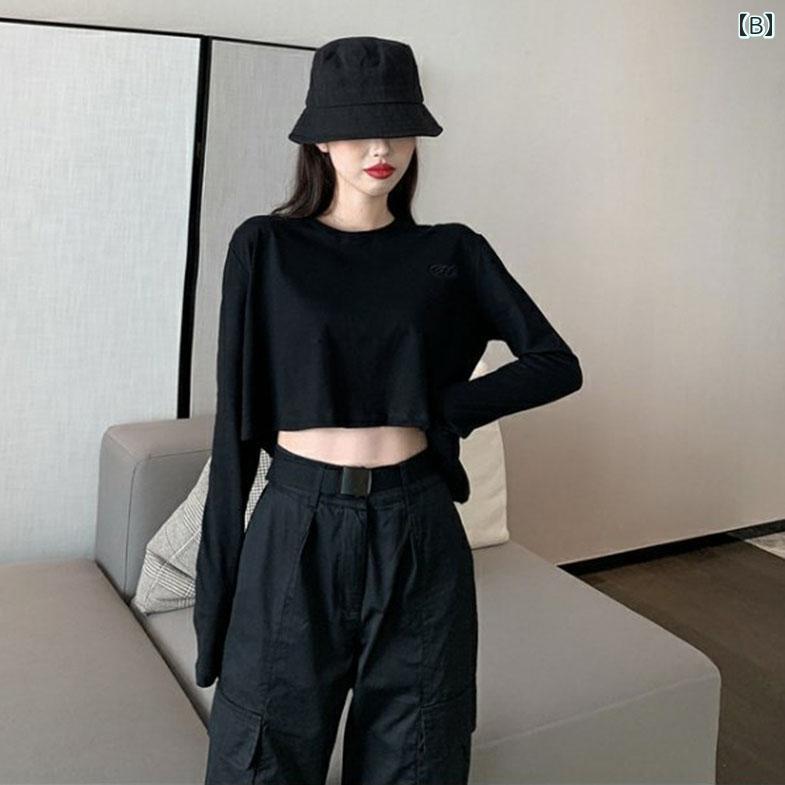 Tシャツ 長袖 アメカジ ダンス クラブ へそ出し ヒップホップ 衣装 KPOP カジュアル レジャー 通学 休日 ホームウェア 快適コーデ レディース
