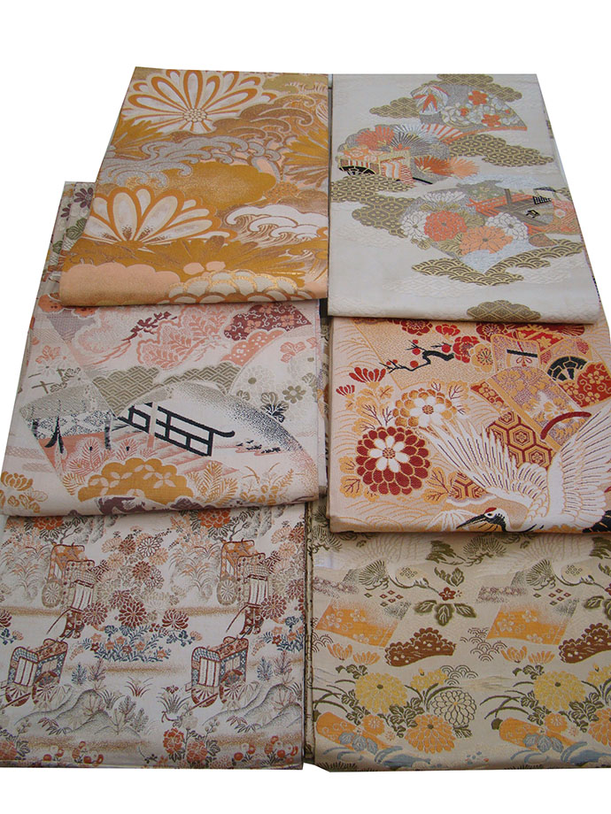 | 項 目 | 大特価品 創作用 アンティーク 丸帯 5本セット1枚サービス品(正絹)仕立上り<Vs520> | ||