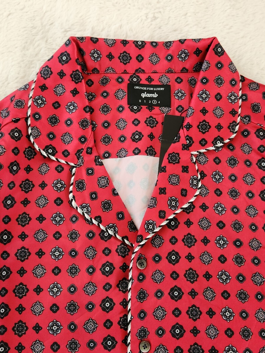 string(75) "超美品 glamb Common SHIRT コモンシャツ 小紋柄 レッド M相当"