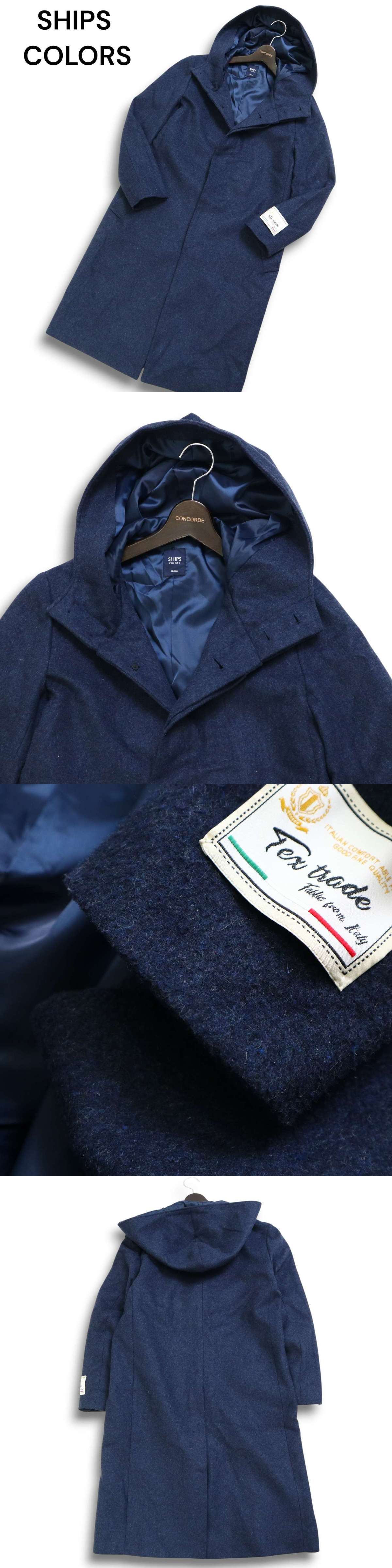 string(152) "SHIPS COLORS シップス カラーズ 秋冬 伊製生地 Tex trade ウール混★ フーデッド ロング コート Sz.M メンズ 紺 ネイビー"