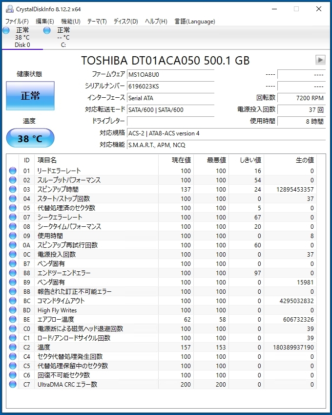 string(60) "東芝 DT01ACA050 (SATA/500GB/使用:8時間) [管理:KC709]"