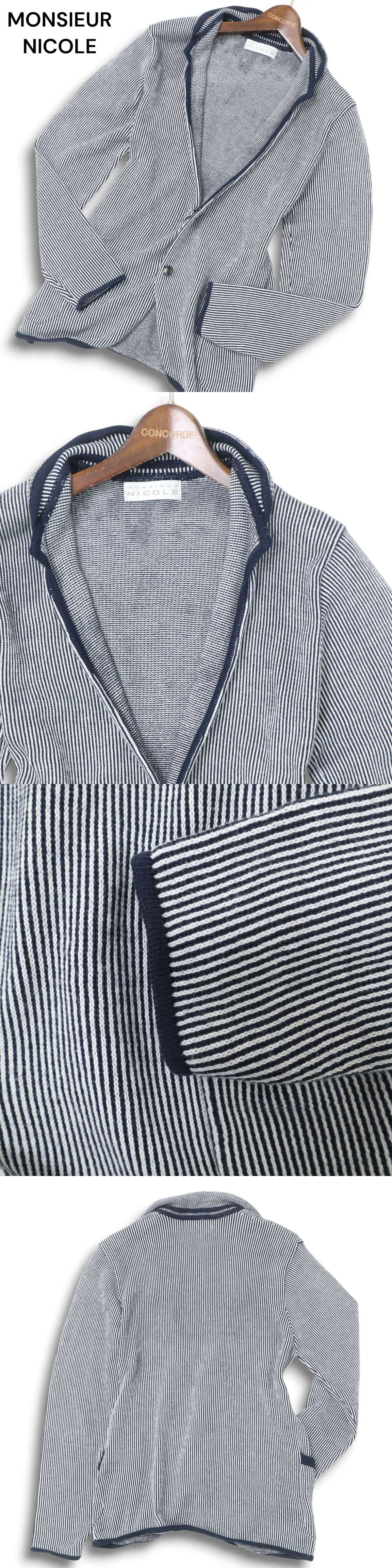 MONSIEUR NICOLE ムッシュ ニコル 通年★ ストライプ ニット カーディガン ジャケット Sz.50 メンズ