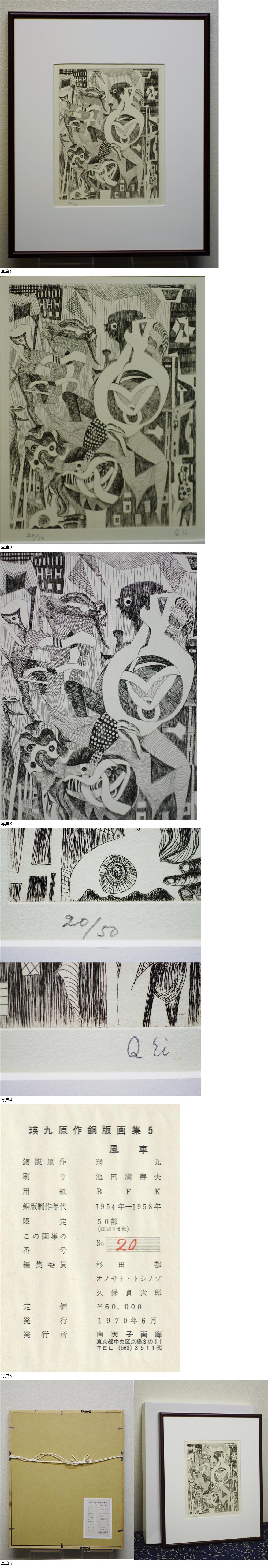 銅版画・1970年 エディション 20/50 スタンプサイン 発行 南天子画廊 摺り 池田満寿夫 版画集奥付のカラーコピー貼付 真作証いたします。 |