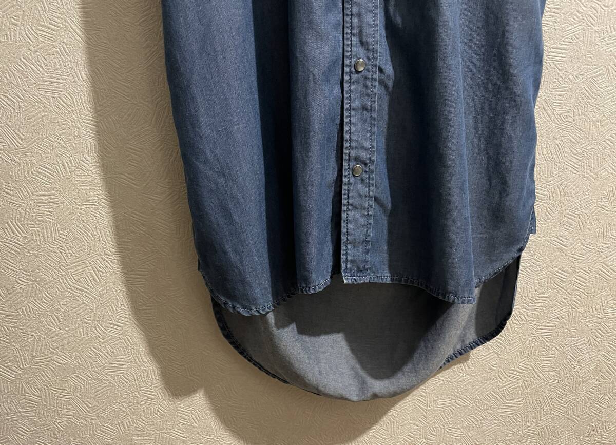 string(167) "◯ MIHARA YASUHIRO バックドレープ デニム シャツ / ミハラヤスヒロ シャンブレー 半袖 抜き襟 インディゴ ブルー 36 Ladies #Sirchive"