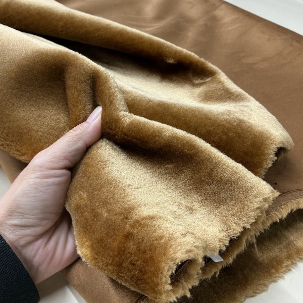 string(127) "F759 ポリエステル ムートン風 スエードフェイクファーボンディング生地 キャメル 1.5m"