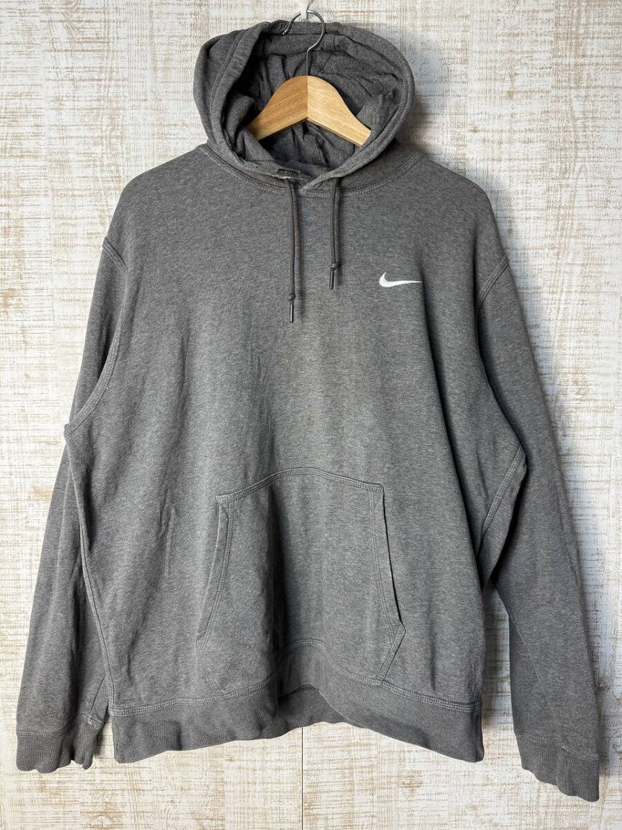●US USED ビッグサイズ US古着 NIKE ナイキ スウェット フード パーカーロゴ刺繍 スポーツ グレー【XL】裏起毛