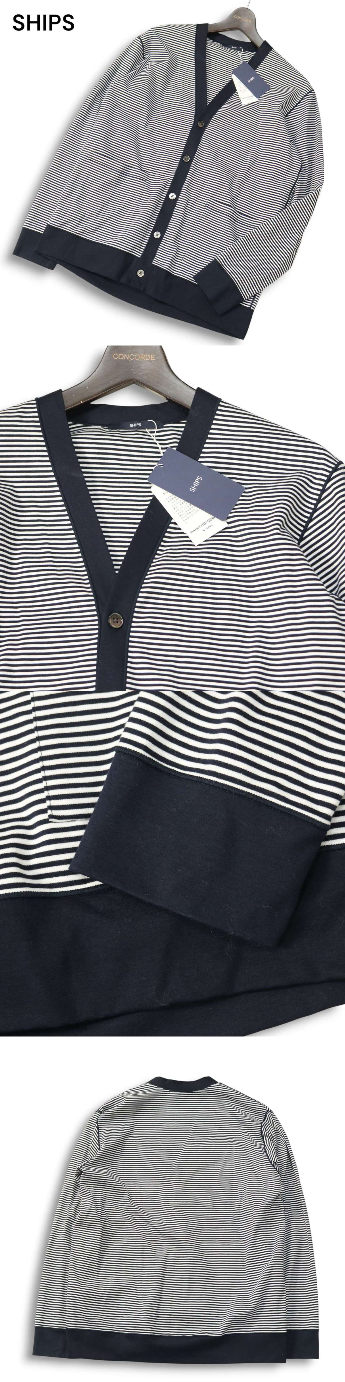 【新品 24AW】 SHIPS シップス 通年 32ゲージ★ ハイゲージ ボーダー ライト カーディガン Sz.S メンズ 日本製 未使用