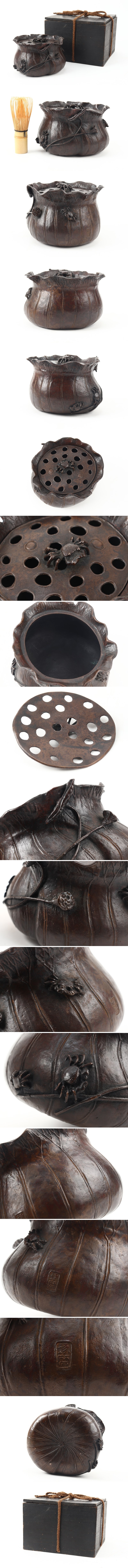 string(114) "【氷】佐渡名工 本間琢斎 琢磨 作 斑朱銅 蓮葉に蟹 建水 こぼし 時代箱 煎茶道具 CI798"