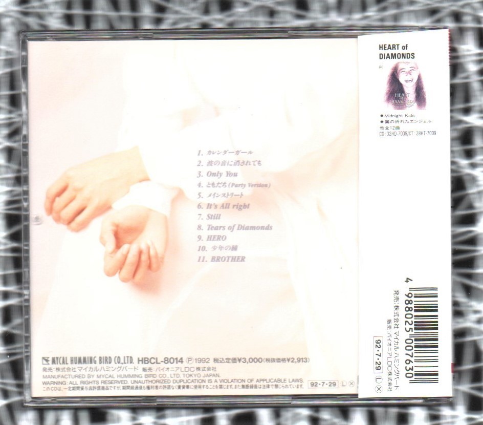 収録曲01カレンダーガール/日本テレビ系ドラマ『助教授一色麗子 法医学教室の女』主題歌02波の音に消されても03オンリー・ユー04ともだち (パーティ・ヴァージョン)05メインストリート06イッツ・オール・ライト/テレビ朝日系ドラマ『ザ・刑事』主題歌07スティル/テレビ朝日系ドラマ『風呂上がりの夜空に』テーマソング08ティアーズ・オブ・ダイアモンズ09ヒーロー10少年の瞳11ブラザー