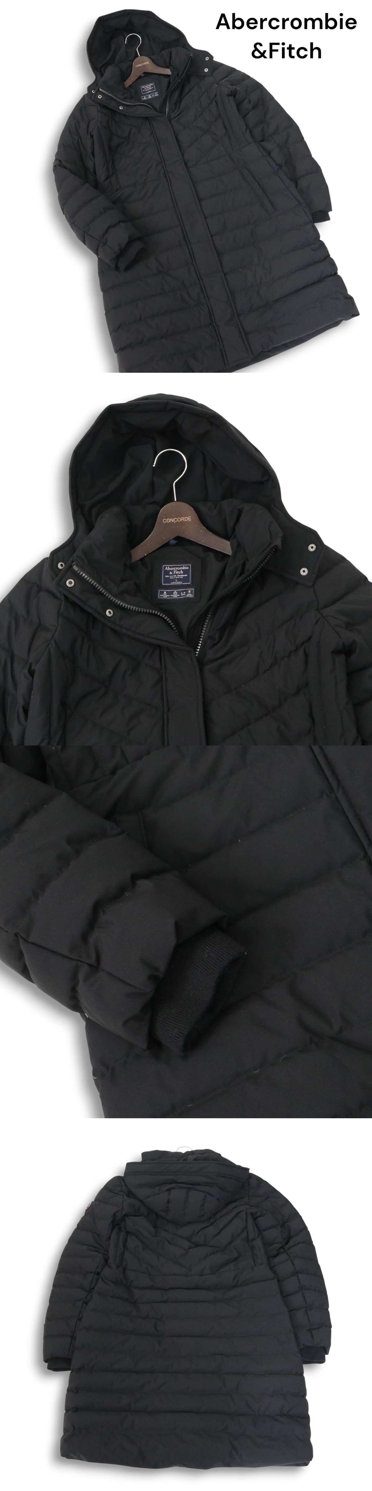 Abercrombie&Fitch アバクロンビー&フィッチ 秋冬 撥水 防風♪ フーディー ダウン コート Sz.L レディース 黒