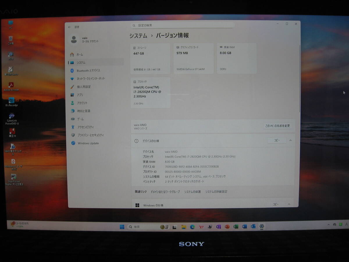 SONY VAIO VPCL22AJ Windows 7 Home を Windows 10 へWindows 11 Homeへアップグレード致しました。Microsoft Office Home and Business 2019 をインストールしており、 ワードやエクセル アウトルックもご利用して頂けます。有線LAN接続 、WiFI無線LANも対応していますので、インターネットも直ぐ、ご利用して頂けます。