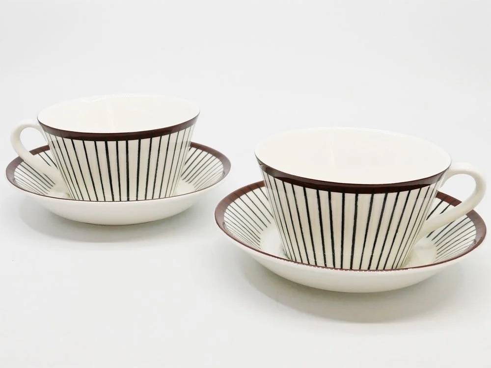 | コメント | スウェーデンの陶磁器メーカー" グスタフスベリ GUSTAVSBERG "より、「 スピサリブ SPISA RIBB 」シリーズのティーカップ&ソーサーです。 デザインを手掛けたのは陶磁器からテキスタイルのデザインまで幅広く手掛けた、Stig Lindberg(スティグ・リンドベリ)。 スピサリブシリーズの”RIBB”とはスウェーデン語で「棒」の意味を持ち、ブラウンの縁取りにブラックラインの入ったスタイリッシュなデザインは、60年以上経つ今でも人気を誇る同氏の代表作です。 今回は復刻品の入荷となりますが、当時に近い工程で作られた仕上がりで、北欧らしい素朴な味わいや温かさを感じられる一品。 日常的に使う食器としてはもちろんですが、デザインが美しいのでお部屋を飾るインテリアとしてもおすすめです。 カップ:約 W13×D11×H6 cm ソーサー:約 W15×D15×H3 cm ※当ショップは、主にリサイクル品を取り扱っております。基本的にUSED品である事をご理解頂き、ご入札をご検討下さいませ。 |