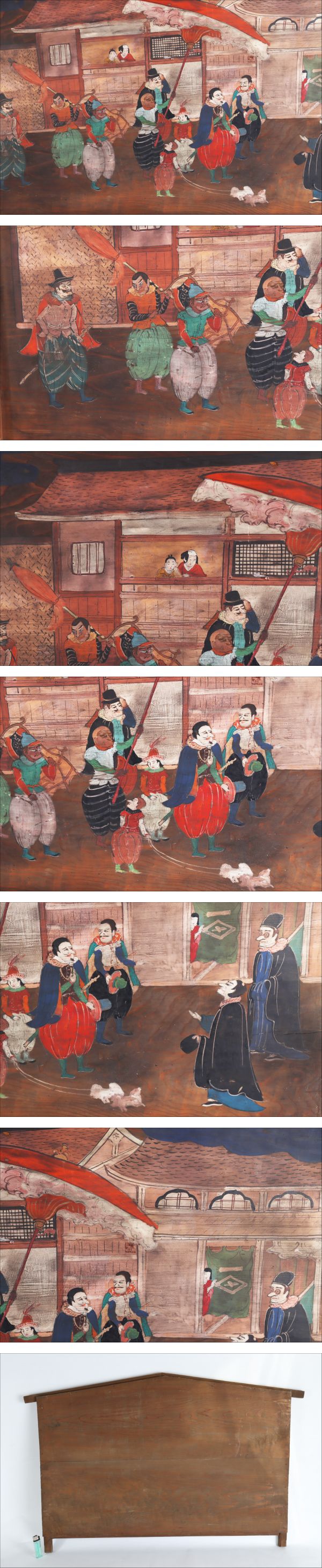 string(90) "貴重 長崎南蛮人渡来之図 神社仏閣 奉納大絵馬 古木板 肉筆 彩色F39"