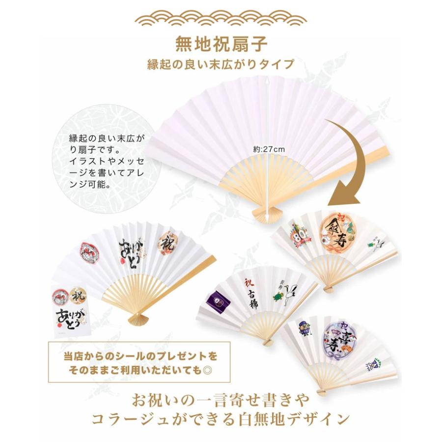 ・白扇子(祝扇には縁起の良い末広がりの白扇子をご用意いたしました。白無地になっておりますので、一言メッセージを添えてお渡しするのも一案です。)