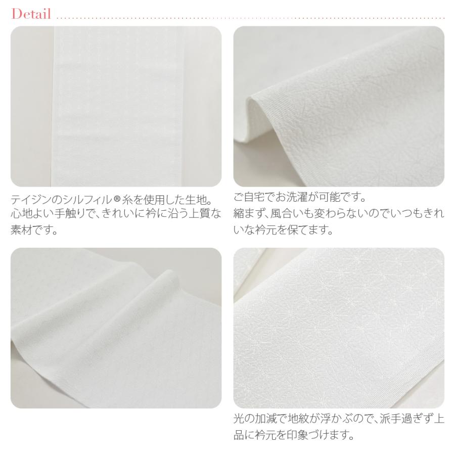 | 備考 | : | 衿元がぐっと華やかになる地紋入りの半衿です。 光の加減で地紋が浮かぶので、派手過ぎず上品に衿元を印象づけます。 テイジンのシルフィル(R)糸を使用した生地。 心地よい手触りで、きれいに衿に沿う上質な素材です。 ご自宅でお洗濯が可能です。 縮まず、風合いも変わらないのでいつもきれいな衿元を保てます。 バリエーションがありますので、着物やシーンに合わせて使い分けると素敵ですね。 お気に入りを見つけてお楽しみください。 ■き楽っく・ローズカラー襦袢専用ファスナー衿加工品はこちらから購入できます。 | ||||
