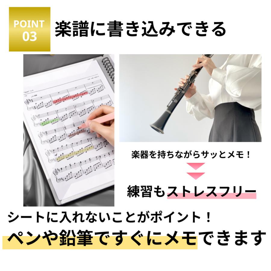 譜面台にピッタリ沿うように設置できるので演奏中に倒れません!