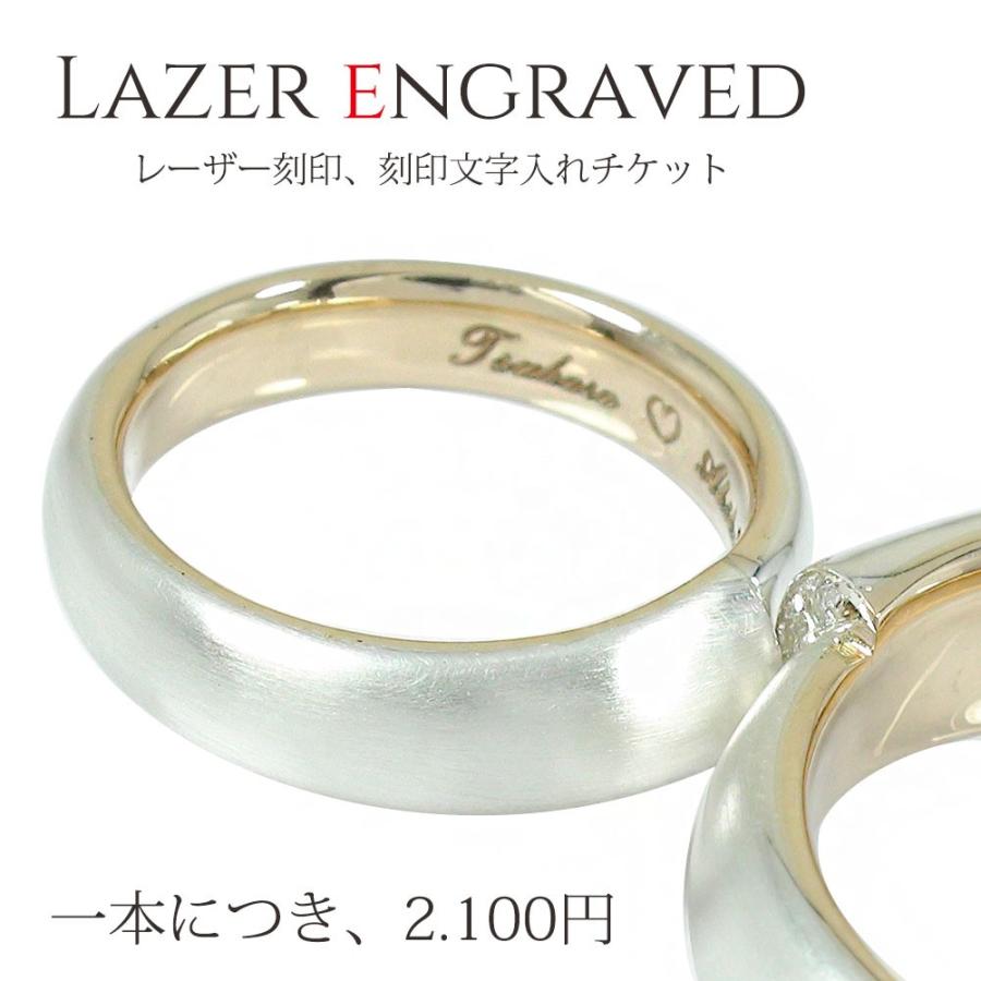 刻印(文字入れ)は1本につき、2100円です。 ペアリングの場合の刻印(文字入れ)は数量2で御注文お願い致します。 男性用 ○○○○○ 女性用 ○○○○○ をお知らせ下さい。 10文字程度にまとめて下さい。 商品の製作日数にプラス3日程お時間を頂きます! リングのデザインによっては、全文字お入れできない場合があります。 文字数が多くなる場合はお問い合わせください。 出来るだけ対応いたします。 文字の書体はゴシック体、筆記体が選べます。 ◆ゴシック体・すべて大文字 (toは小文字) (例) 2013.4.30 E to K |