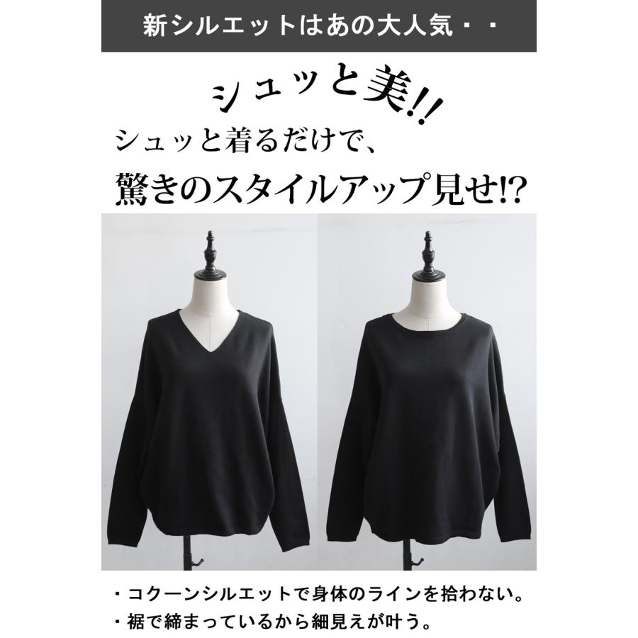 コクーンシルエットで身体のラインを拾わず、裾で自然にフィットして細見えを叶えます。