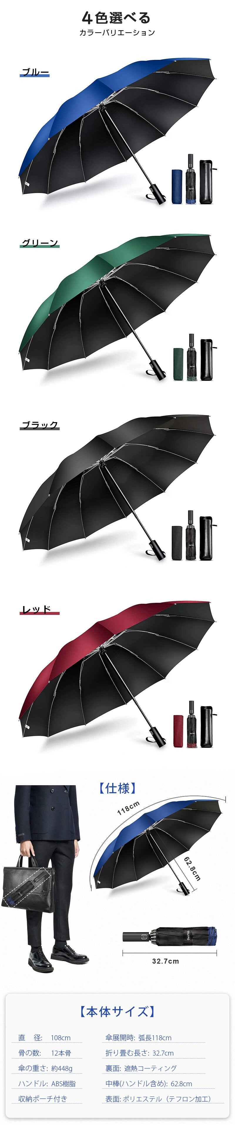 「クーポンで2192円」折りたたみ傘 日傘 12本骨 折り畳み傘 自動開閉 軽量 逆さ傘 大きい 折りたたみ 逆さま傘 完全遮光 メンズ 男女兼用 ワンタッチ 折れにくい