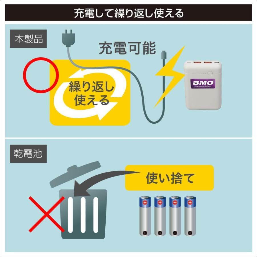 ■出力ポート:USB-A:6V-1.5A(2ヶ所) Type-C:5V-1.5A, 6V-1.5A, 9V-1.5A, 12V-1.5A (最大18W)(1ヶ所)