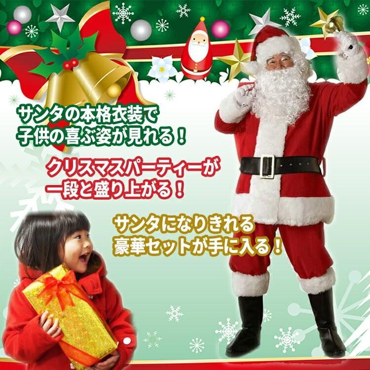 サンタ コスプレ サンタクロース 衣装 男性 メンズ コスチューム 6点セット ブーツ カバー付属 (ジャケット+ズボン+ベルト+帽子+ひげ+靴カバー)