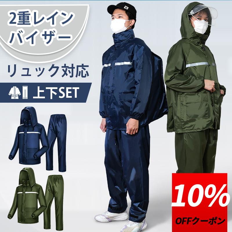 2025最新 レインコート 自転車 レディース レインスーツ 上下 レインウェア レインポンチョ リュック対応 収納できるフード付き 超防水・撥水 爆買