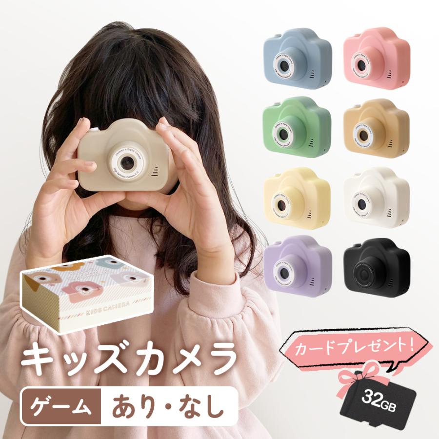 | 商品の特徴 | ・写真、動画が撮れる ・インカメラで自撮りもできる ・ゲームありモデル:4つのミニゲーム付き ・ゲームなしモデルも選べます ・音楽プレーヤーにもなる ・可愛いくすみカラー7色とホワイト、クールなブラックの全9色展開 ・コロンとまるいフォルムが小さな手にもやさしくフィット |