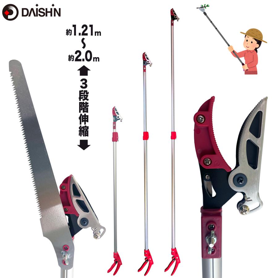 ちょうどいい2m 超軽量620g 鋸刃付き 大進 高枝切りバサミ たかえだきりばさみ 剪定鋏 太い枝 キャッチ機能 ノコギリ付き高枝切りバサミ