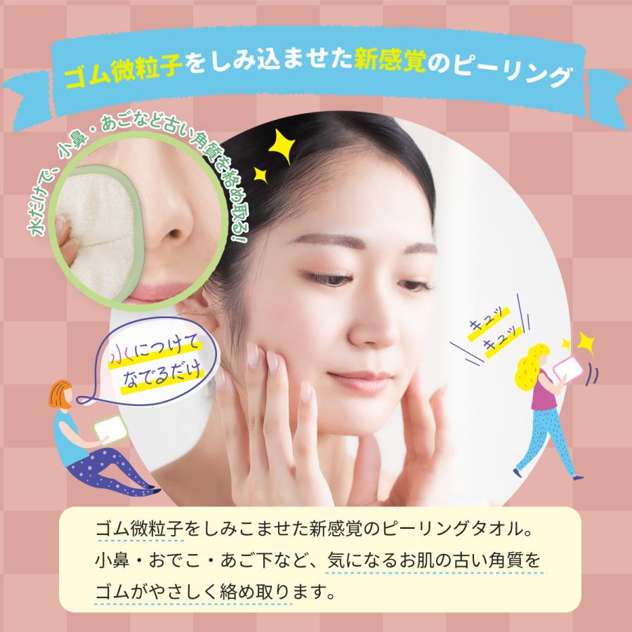 ゴムのチカラで古い角質をソフトにピーリングしてくれます。