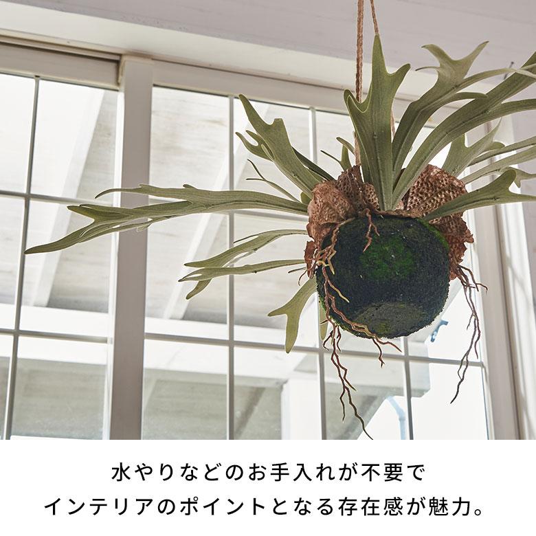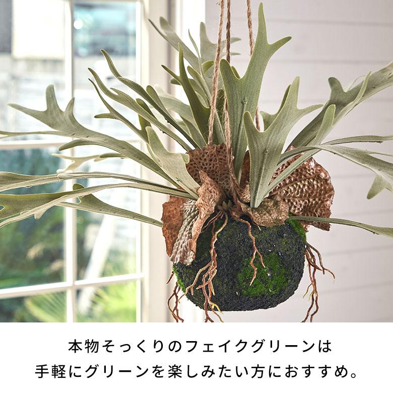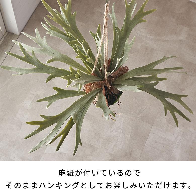 おしゃれなハンギングプランツといえば、シカの角やコウモリの羽のような個性的な姿が人気のビカクシダ(コウモリラン)。手軽にグリーンを楽しみたい方には、本物そっくりのフェイクグリーンがおすすめです。水やりなどのお手入れが不要で、インテリアのポイントとなる存在感が魅力。麻紐があらかじめ取り付けられているため、届いたその日から簡単に飾れます。