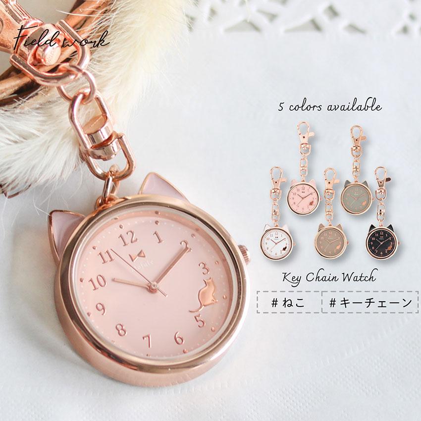 腕時計 懐中時計 レディース ケディ 猫 ネコ シルエット かわいい キーチェーン キーホルダー フック 見やすい 人気 オススメ 高品質 プチプラ フィールドワーク