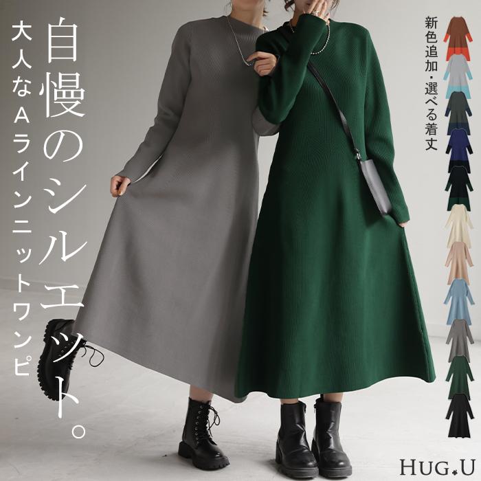 ワンピース Aライン ニット レディース ニットワンピ ニットワンピース ロング ロングワンピ リブ きれいめ