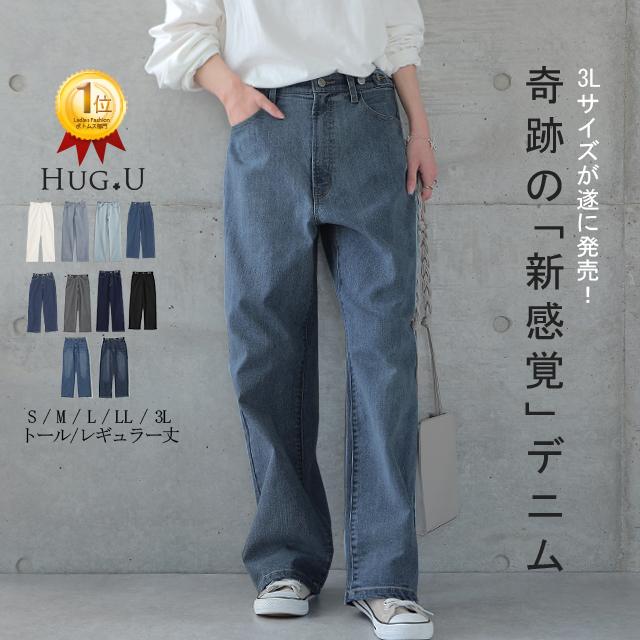 デニム パンツ デニムパンツ レディース ワイドパンツ ワイド 大きいサイズ ジーンズ ジーパン ボトム 体型カバー ボトムス ストレート ゆったり ハイウエスト
