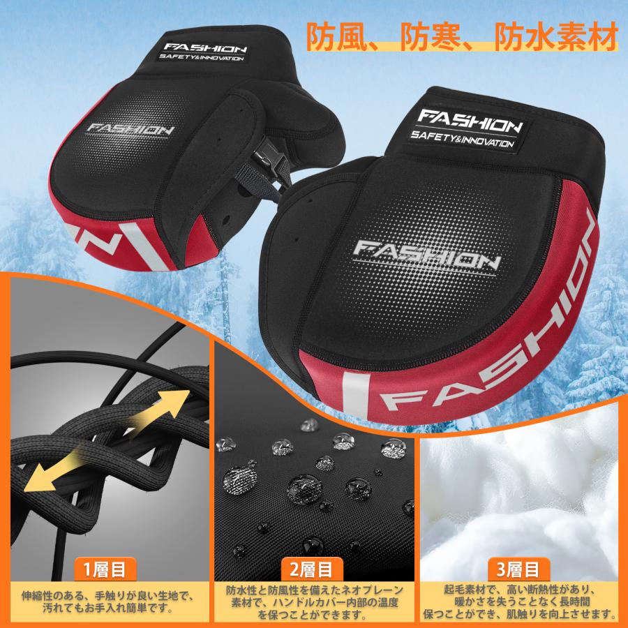 バイク用 ハンドルカバー バックル式 裏起毛 防寒 防水 防風 ハンドルウォーマー 保温性抜群 暖かい 寒さ対策 反射コーティング付き 汎用タイプ Homwarm