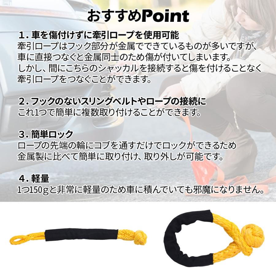 牽引フック 自動車 2個セット 17t 牽引ロープ 車 シャックルロープ 牽引 けん引 ソフトシャックル ロープシャックル 合成ロープ けん引ロープ けん引フック