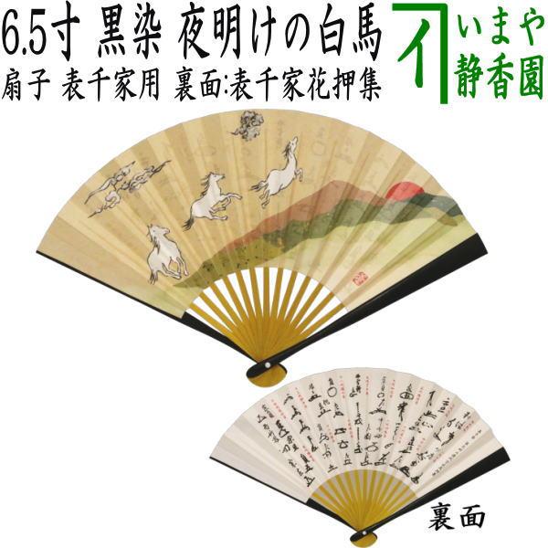 茶道具 扇子 干支 午 御題 明 干支扇子 表千家用 6.5寸 黒染め 中骨黄染め 夜明けの白馬 裏面:表千家花押集 15代 猶有斎まで 干支午 御題明 黒染 中骨黄染