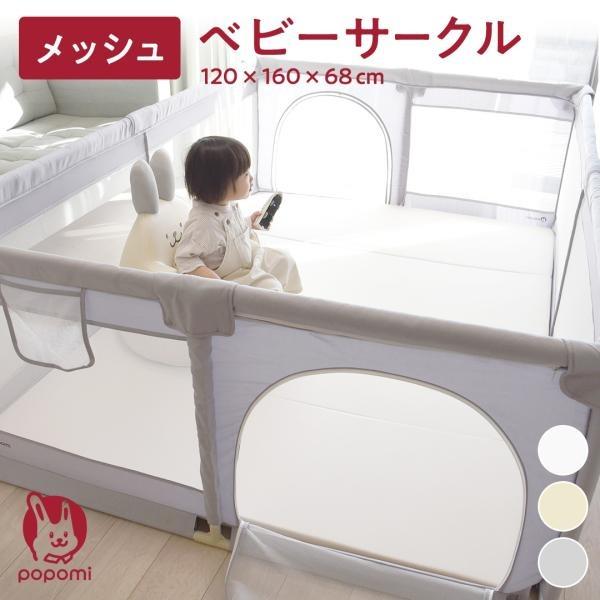 ベビーサークル メッシュ 折りたたみ ハイタイプ 長方形 120×160 ベビーフェンス 赤ちゃん popomi メッシュサークル 爆買