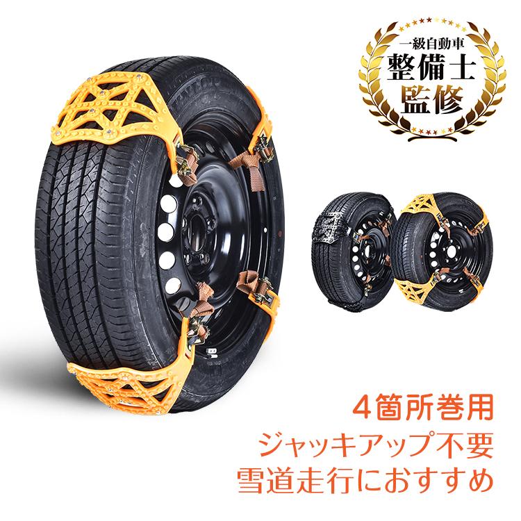 タイヤチェーン 非金属 2本分 スノーチェーン ジャッキアップ不要 R14 R15 R16 雪道 プラスチック アイスバーン スパイクピン 汎用 簡単取付 車 タイヤ 滑り止め