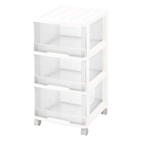 | 幅約34.5cmの使い勝手の良いサイズですのでリビングや押入れ、脱衣所やキッチンとどこでも使える万能な収納ケースです! 深型の引き出しですのでたっぷり収納できます♪ 引き出しは収納品が見えやすいクリアタイプですので何がどこに片付けてあるのか分かりやすく探す手間もいりません! 引き出しにはストッパーが無く全て取り出せますので衣替えの時など入れ替えが簡単。 360度回転するフリーキャスターですので移動もらくらく。 用途に応じて取り外しも自由にできます。 2台揃えれば、積み重ねも簡単にできますので見た目もスッキリ収納できます。 組み立て式ですが差し込むだけの簡単設計! |