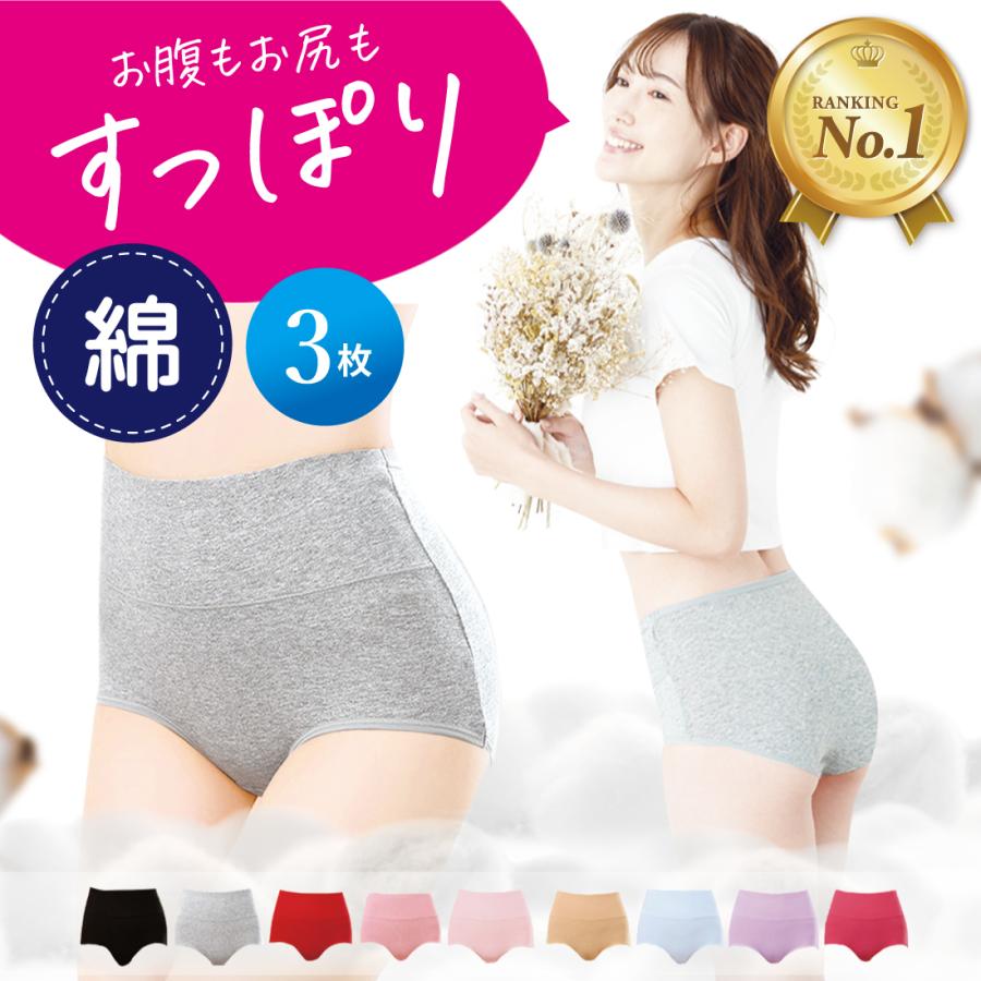 [3枚セット] 綿 コットン 医師監修 雑誌掲載モデル 選べる サニタリー ノーマル ハイウエスト ショーツ レディース 桃尻 温活 下着 深め 深履き