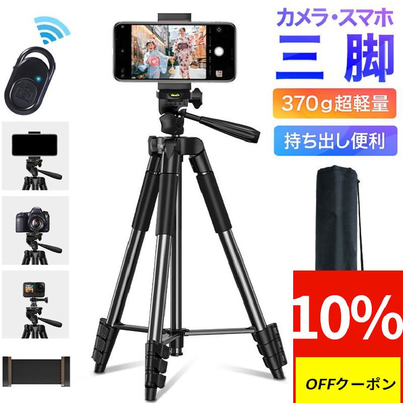 【クーポンで2142円】三脚 スマホスタンド リモコン付き コンパクト三脚 3WAY雲台 スマホ スマホ用 携帯 デジタル一眼レフ 3段階伸縮 360回転 自撮り棒