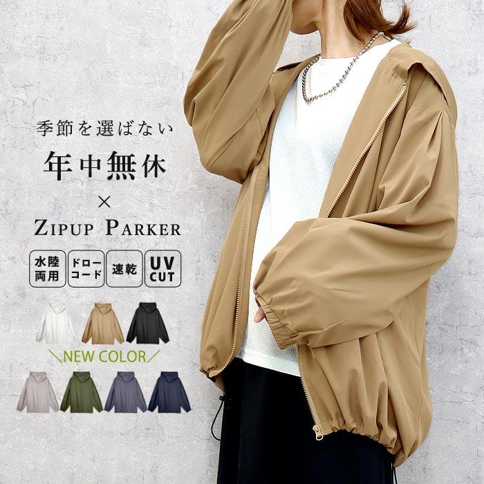 ラッシュガード レディース パーカー 水陸両用 ジップパーカー 速乾 UV対策 紫外線対策 長袖 袖ゴム バルーンスリーブ 薄手 ゆったり ドローコード 接触冷感 夏 プール 海 水遊び 重ね着 レイヤード 可愛い シンプル 40代 30代 50代 60代 大きいサイズ ゆったり 大人 カジュアル かわいい きれいめ SALE セール uricca ウリッカ うりっか