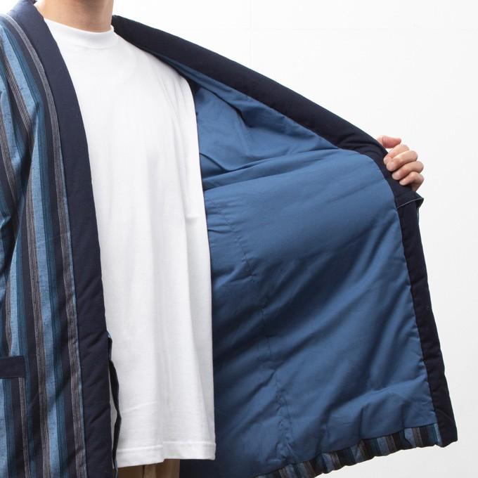商品名:日本製 半纏 メンズ 久留米織 綿入れ 中綿 紬織 かつお縞 男性用 はんてん 中綿 おしゃれ 防寒 暖かい どてら 冬