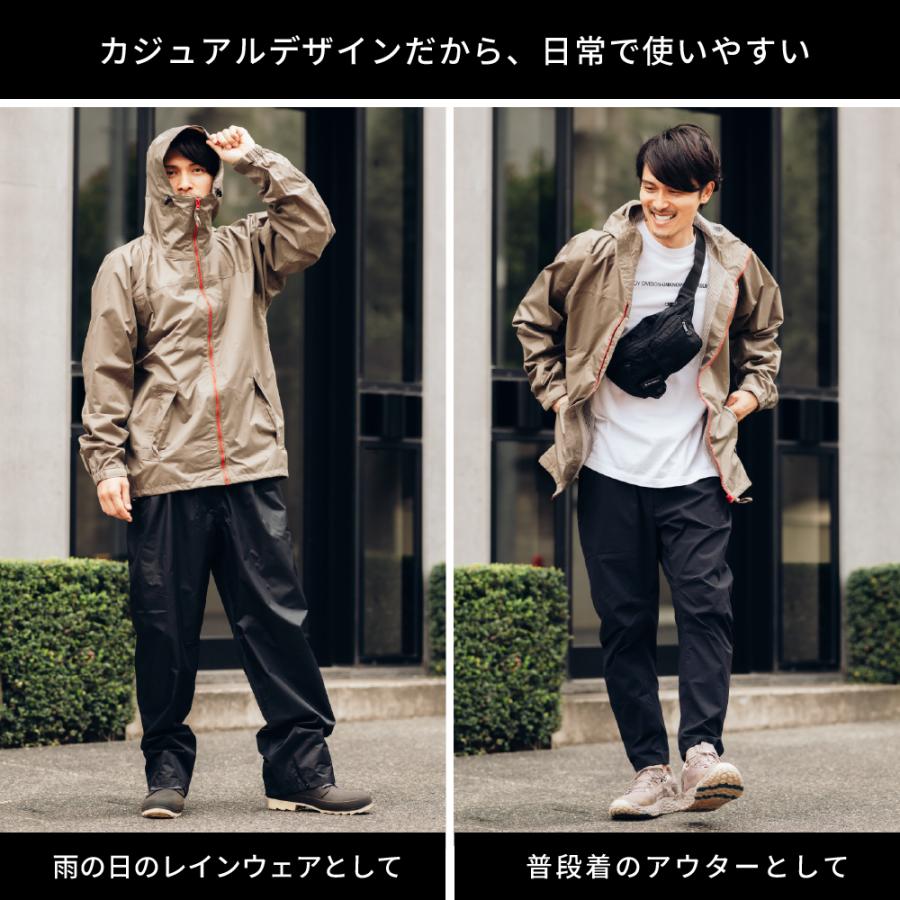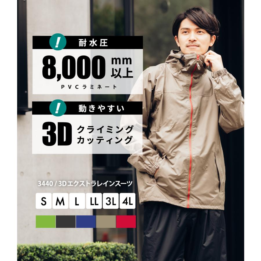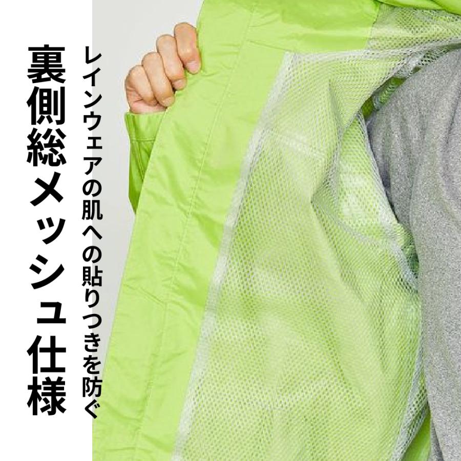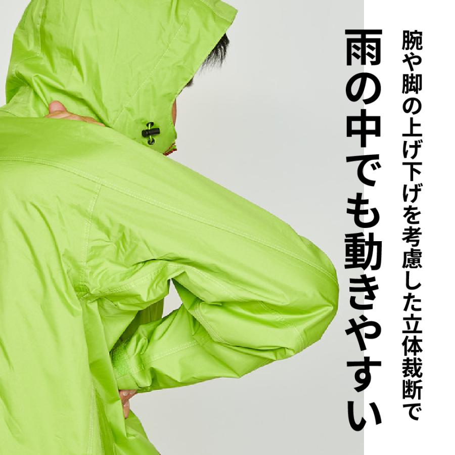 | 商品説明 | 防水性の高いPVCラミネートを採用した動きやすいレインスーツです。豊富なサイズとシンプルなデザインで幅広くお使いいただけます。表地は信頼の防水素材、耐水圧8,000mm以上のPVCラミネートを使用。裏地は上下ともに総裏メッシュで、べたつきを軽減。ジャケットは肩・肘を動かしやすいクライミング3Dカッティングを採用し、本格アウトドア並みの立体裁断で動きやすさを追求しました。ジャケットの後ろ丈を長めにすることで、かがんだ際も上着とズボンの間に隙間ができません。また襟元も高めに設計してあるので吹き込む風雨も軽減してくれます。ジャケット背面には安全性を高めるリフレクタープリントで夜間や薄暗い雨の日でも安心。フードはマジックテープで深さ調節が可能で、使用しない時は丸めて収納できます。袖口はベルクロ+伸縮ゴムで調節でぴったりフィット。袖口からの雨の侵入を防ぎます。Sサイズから4Lサイズまでの豊富なサイズ展開で、女性にもおすすめです。上下別カラーなのでカジュアルでいかにもカッパという感じではなく、アウトドアやキャンプ・釣りなどにもオススメ。もちろん通勤・通学や作業用にもお使いいただけます。ちょっと小雨の日にジャケットだけを使用したり汚れやすい作業や洗車の時にズボンだけを使用したりと、普段使いもしやすい一着です。 |