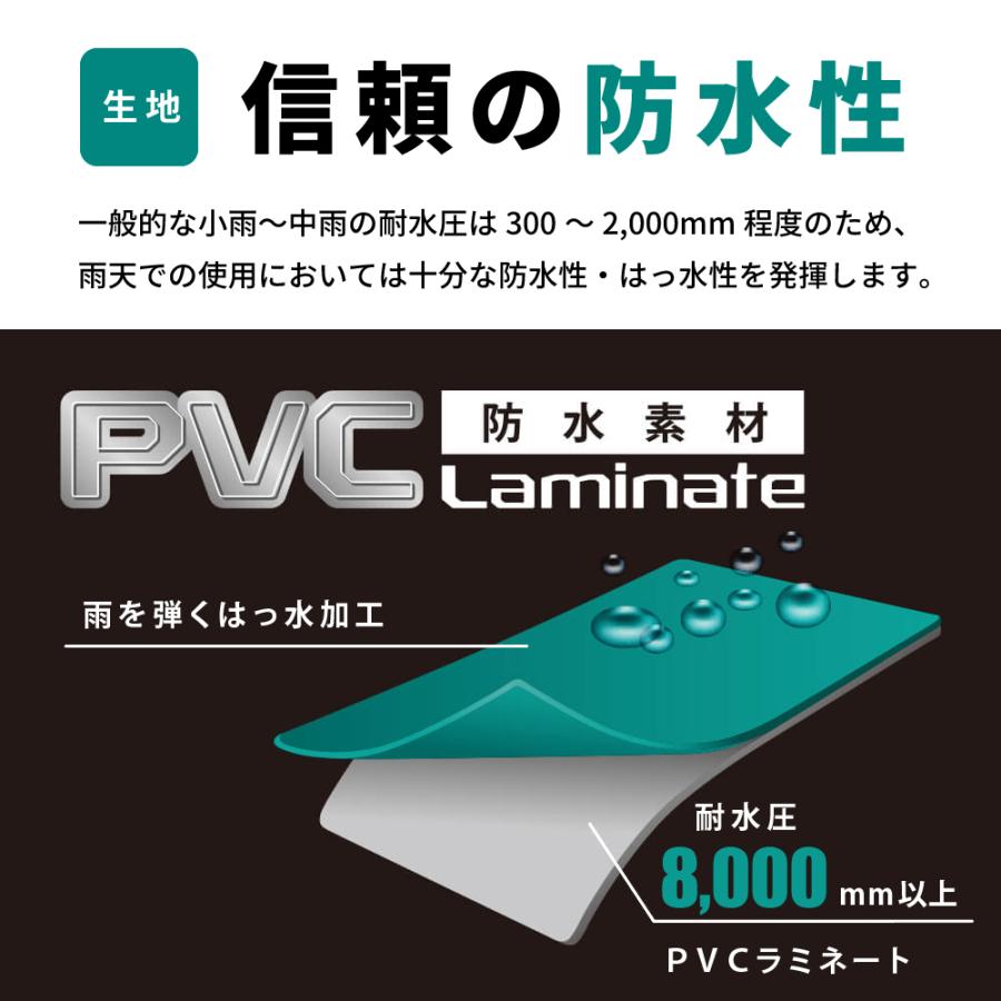 | 素材 | 表地:ポリエステル100%(PVCラミネート) 裏地:ポリエステル100%(上下総裏メッシュ) |