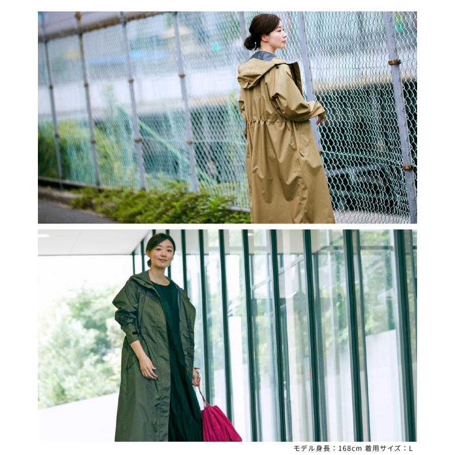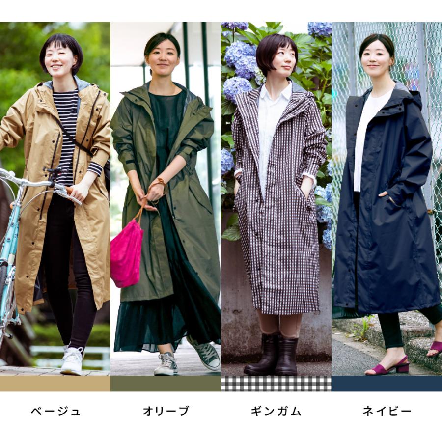 | 商品説明 | 日常での使いやすさを重視し、街歩きや自転車運転で便利な機能が満載の快適・スタイリッシュなレインコートです。防水性と軽さ、素材感にこだわったTPUラミネート加工によって着心地は抜群。TPU(熱可塑性ポリウレタン樹脂)は従来のポリウレタン樹脂より劣化が起きにくい素材なので耐久性に優れています。軽い素材で雨の日でもストレスなく過ごすことができます。レディースのパターンを採用しているので、キレイめのファッションにもマッチ。女性デザイナーがこだわって作った商品です。さらにウエスト周りをドローコードで絞れば洗練されたシルエットが可能です(内側から絞れます)。前裾には雨を防ぎバタつきを抑えるアンダーガード(三角マチ)を配置。自転車運転で気になるペダルをこいだ時に膝・脚が濡れる心配を軽減しました。フード内側にはレインバイザーをスナップボタンで取り付けできるバイザーシステムを搭載しています。レインバイザー(別売り)と合わせて使えば、クリアな視界を確保でき女性が気になるメイク崩れも防止できます。フードは被りの深さを調整できるマジックテープと顔周りのドローコードがついているのでフィットさせることが可能です。雨が吹き込みにくいよう高めの襟元や、袖口も大型のタブで絞ることができ、おしゃれさだけでなく濡れにくいようフィット感にもこだわっています。膝下丈のロングコートでレインブーツと合わせれば足元もしっかりガード。普通のコートに近いシルエットと、普段使いしやすいベージュ・ギンガム・オリーブ・ネイビーのカラー展開でトレンチコートやスプリングコート感覚で、雨が降りそうなときや止んだ後に着ていても違和感がありませんよ。軽くて場所を取らないので旅行や職場に置いておくのもオススメ。薄暗い雨に日には重要なリフレクター(反射材)も、フードを被らないときは隠れる位置に配置してあるので、いかにもカッパという感じが無く羽織りやすいです。鍵などを入れるのに便利な左右のポケットと、収納袋の付属などあったら便利のポイントもしっかり押さえています。雨の日の自転車で、機能もおしゃれも妥協したくない人のための、高い機能性とデザイン性を両立させたレインコートです。 |