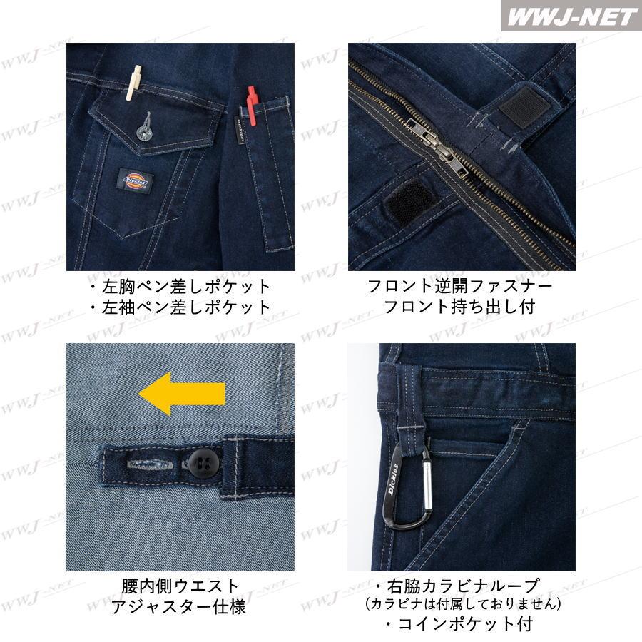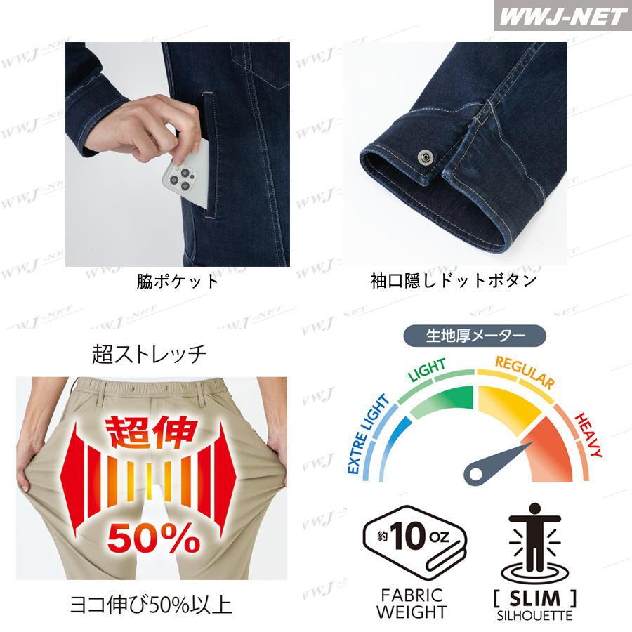 機能 | ◆左胸ペン差しポケット ◆左袖ペン差しポケット ◆フロント逆開ファスナー・フロント持ち出し付 ◆腰内側ウエストアジャスター仕様 ◆右脇カラビナループ(カラビナは付属していません) ◆コインポケット付 ◆脇ポケット ◆袖口隠しドットボタン ◆ボタンにエイジング加工 ◆ジャパンフィットスリムモデル ◆超ストレッチ(ヨコ伸び50%以上) |